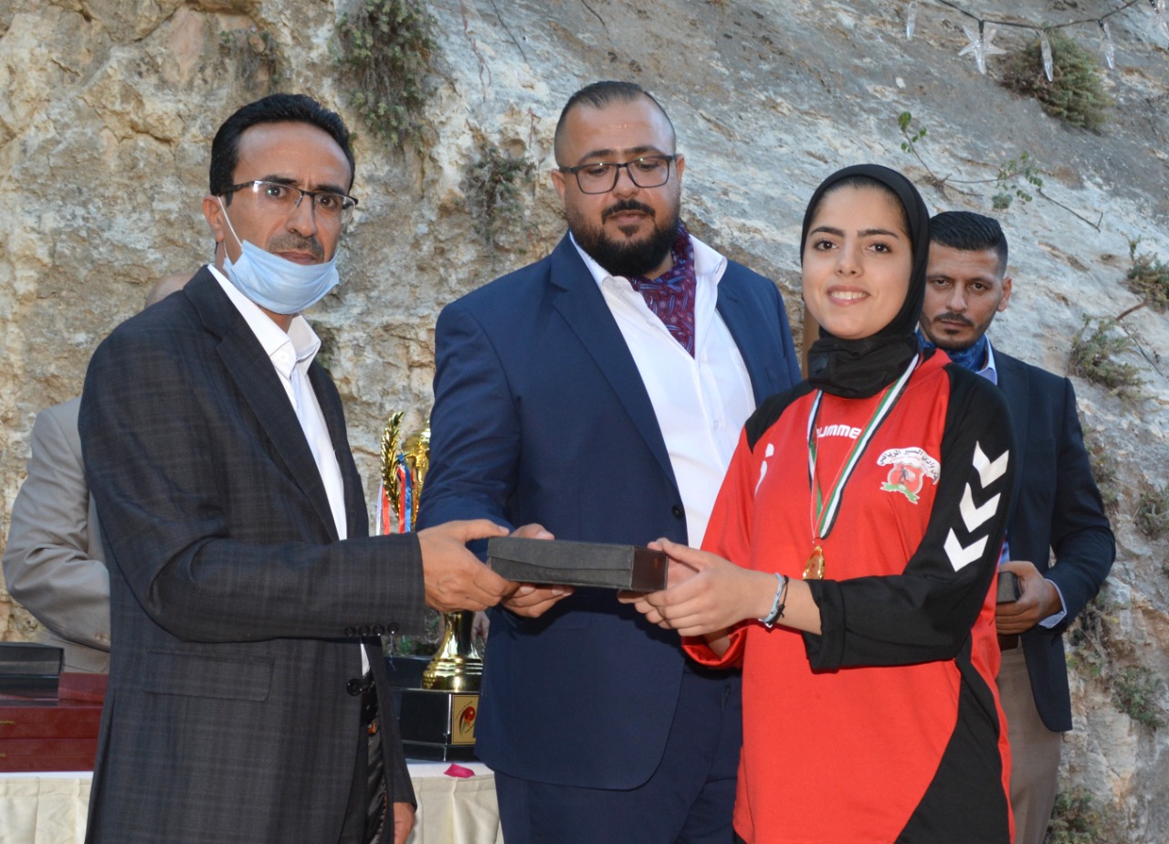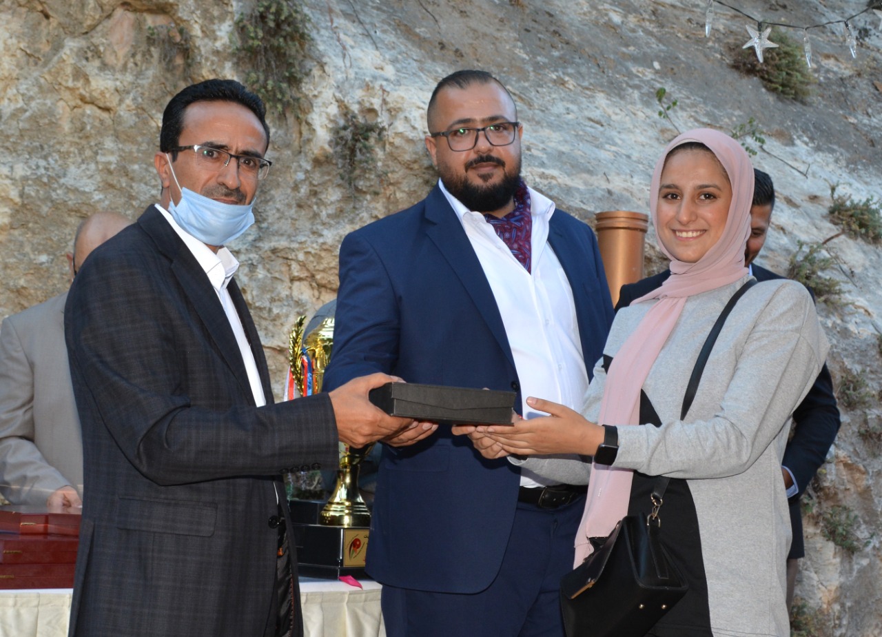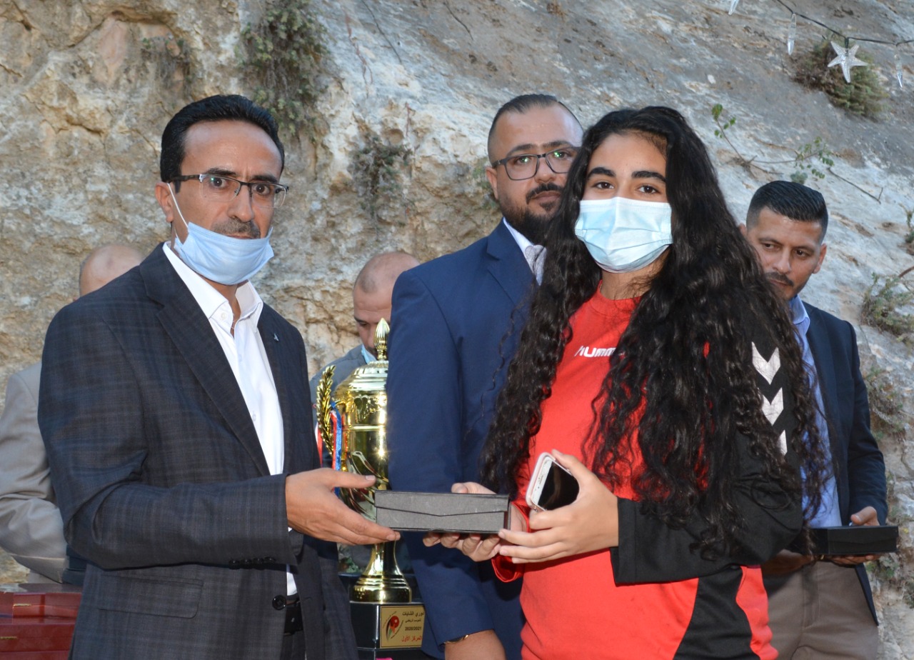 وفي ختام الحفل قدم هديب الجوائز التقديرية للاعبات والمشرفين على الفريق، وقدم دروع تذكارية لمتصرف وادي السير، ومدير المركز الأمني، وقدم المحاميان محمد العطار ورامي السليحات دروع تقديرية للفريق، ولمنتجع البيارة السيد ابو علاء العقروباي.
