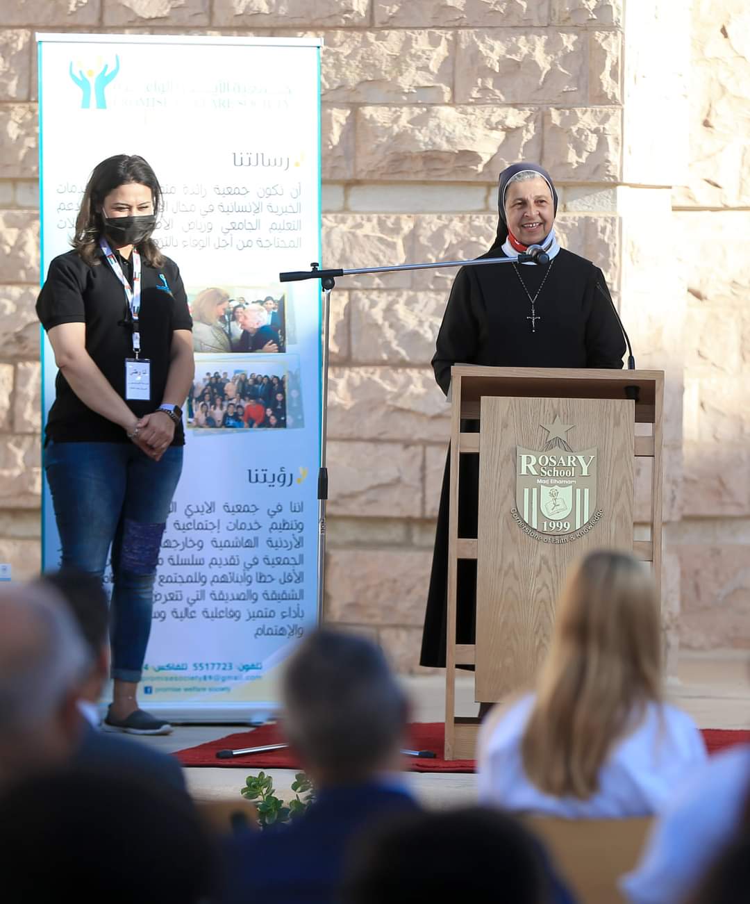 بالإنابة عن سمو الأميرة عالية الطباع رئيسة جمعية الأيدي الواعدة الخيرية؛ رعت الأميرتان سارة وعائشة ابنتي الفيصل؛ حفل اختتام المؤتمر الشبابي السابع عشر؛ والذي أقامته الجمعية بالتعاون مع مدرسة راهبات الوردية/ مرج الحمام؛ تحت عنوان “أنا لوطني”؛ وذلك في ساحات المدرسة.