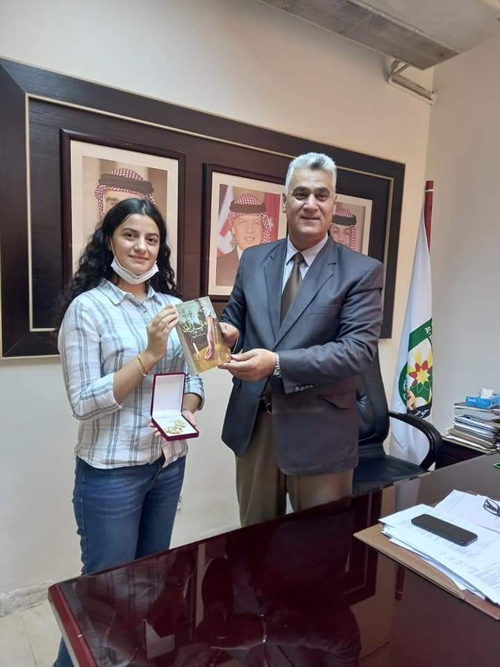 ضمن توجيهات رئيس الجامعة الأستاذ الدكتور عبدالله سرور الزعبي بالاهتمام بالطلبة المتميزين والمبدعين، كرم عميد شؤون الدكتور عزيز الرحامنة وبحضور الدكتور اشرف الوريكات مدير دائرة الهيئات والنشاطات الطلابية الطالبة تيا جودة المبدعة والمتميزة في مجال الكتابة والخاطرة والتي تميزت وابدعت في روايتها الأولى بعنوان (ندى أيلول) ولها العديد من المشاركات والنشاطات الأدبية وحصلت على المركز الثاني على مستوى المملكة في إحدى مخيمات ريادة الأعمال.