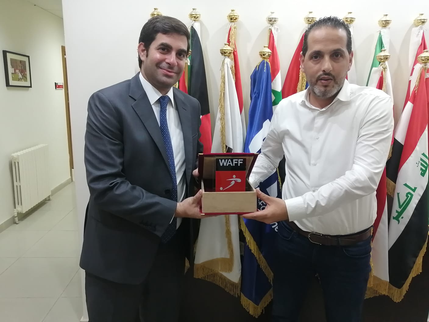 وقام الأمين العام لاتحاد غرب آسيا السيد خليل السالم خلال الزيارة باطلاع الرجوب والوفد الضيف المرافق، على ما تم إنجازه لغاية الآن من قبل اتحاد غرب آسيا من برامج وأنشطة وما تتضمنه أجندته من خطط مستقبلية.