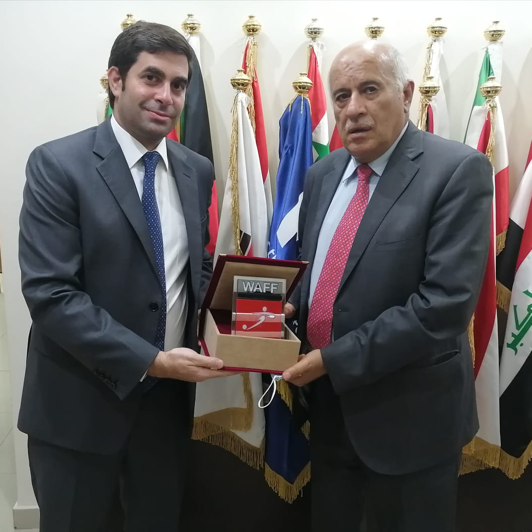 وكشف الرجوب رئيس الاتحاد الفلسطيني لكرة القدم ذلك على هامش زيارة قام بها الخميس ٢٨ تشرين الأول/ أكتوبر ٢٠٢١ إلى مقر اتحاد غرب آسيا في العاصمة الأردنية عمّان، التي تواجد بها لحضور مباراة منتخبي فلسطين وتركمانستان ضمن التصفيات المؤهلة لنهائيات كأس آسيا تحت ٢٣ عاماً، ويرافقه بها الأمين العام للمجلس الأعلى الفلسطيني للشباب والرياضة السيد عصام القدومي، والأمين للاتحاد الفلسطيني لكرة القدم السيد فراس أبو هلال، ومدير التسويق السيد حسام الرجوب.