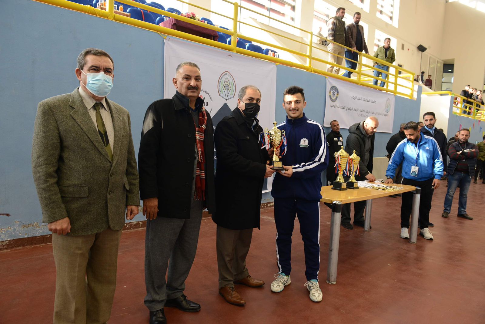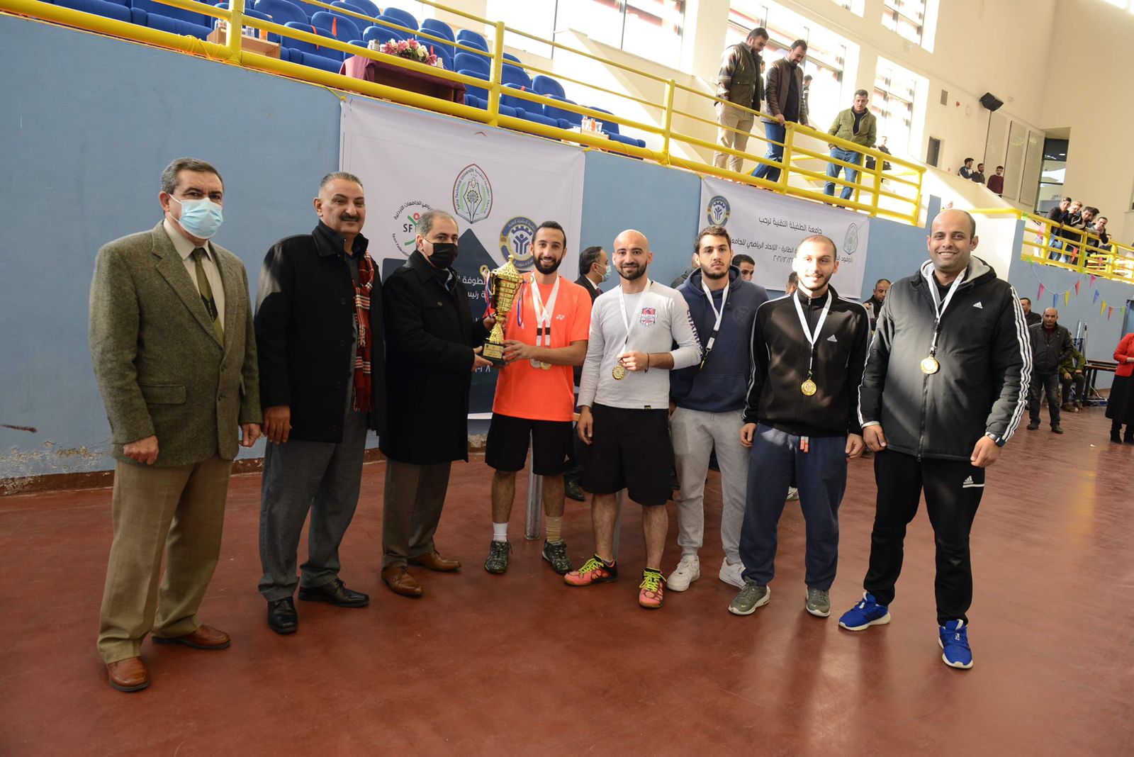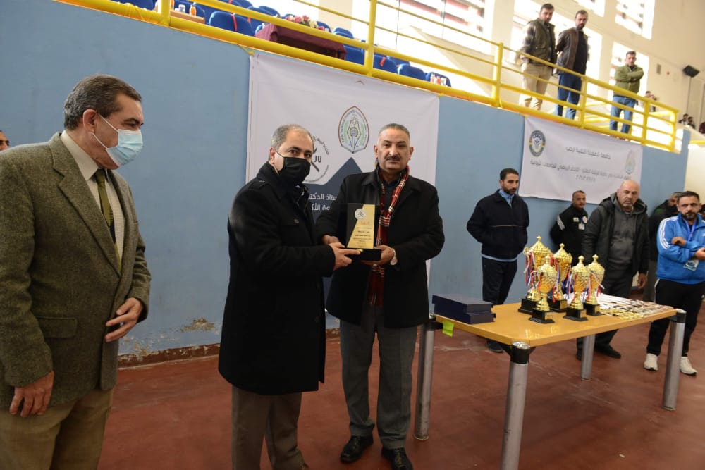 توج رئيس جامعة الطفيلة التقنية ا.د عمر المعايطة، وبحضور عميد شؤون الطلبة في جامعة الطفيلة التقنية الدكتور محمد المحاسنة، وعميد الهندسة د . عبدالإله الشباطات ،و عمر محمد الربابعة ،مدير النشاط الرياضي بإشراف دائرة النشاط الرياضي ،في جامعة الطفيلة.