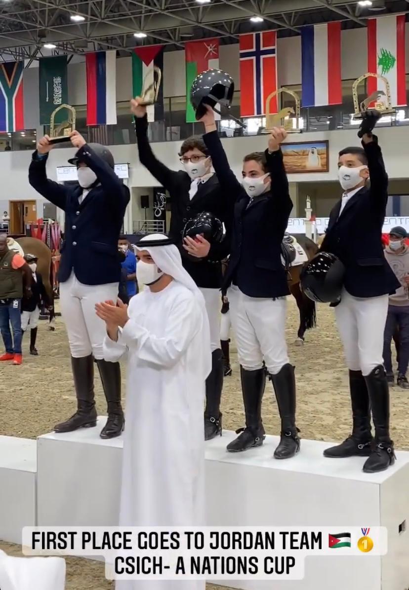توج فريق المنتخب الوطني للأشبال الاردني للفروسية بالمركز الاول في بطولة الاطفال CSICH_ A ،ضمن فعاليات كاس الامم في امارة الشارقة في دولة الامارات العربية المتحدة،شارك فريق الاردن للأشبال (الاطفال) في بطولة الشارقة الدولية – المجموعة السابعة – في دولة الامارات العربية المتحدة – وقد حصل الفريق الاردني على المركز الاول في هذه المنافسة التي كانت بين فريق الامارات ، الاردن ومصر .