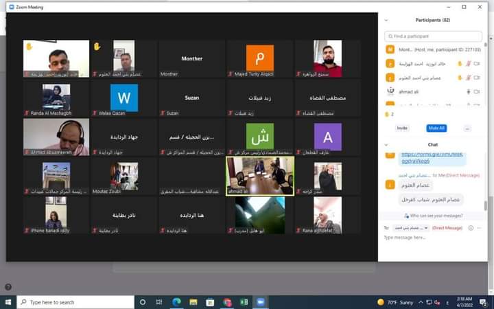 ضمن خطة مديرية المراكز الشبابية والكشافة للعام الحالي، نفذت المديرية اليوم الخميس عبر وسائل الاتصال المرئي وبحضور أمين عام وزارة الشباب الدكتور حسين الجبور ورشة تدريبة حول بناء خطط البرامج ومؤشرات الأداء للمراكز الشبابية للأقاليم الثلاثة بمشاركة رؤساء المراكز الشبابية ورؤساء الاقسام.