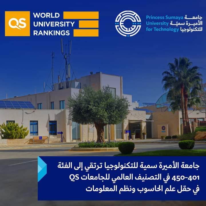 ارتقت جامعة الأميرة سمية للتكنولوجيا إلى الفئة “401-450 “في التصنيف العالمي للجامعات QS في حقل علم الحاسوب ونظم المعلومات للعام 2022